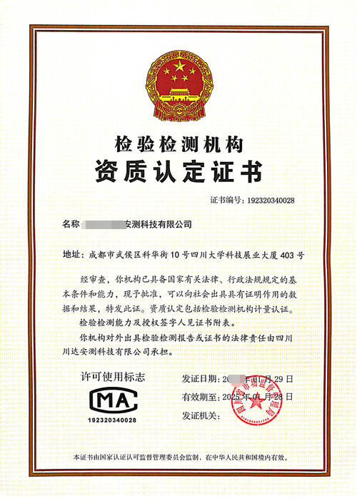 检验检测机构资质认定复查(承诺告知方式取证):为社会提供公证数据的产品质量检验机构,必须经省级以上人民政府计量行政部门对其计量检定、测试的能力和可靠性考核合格。